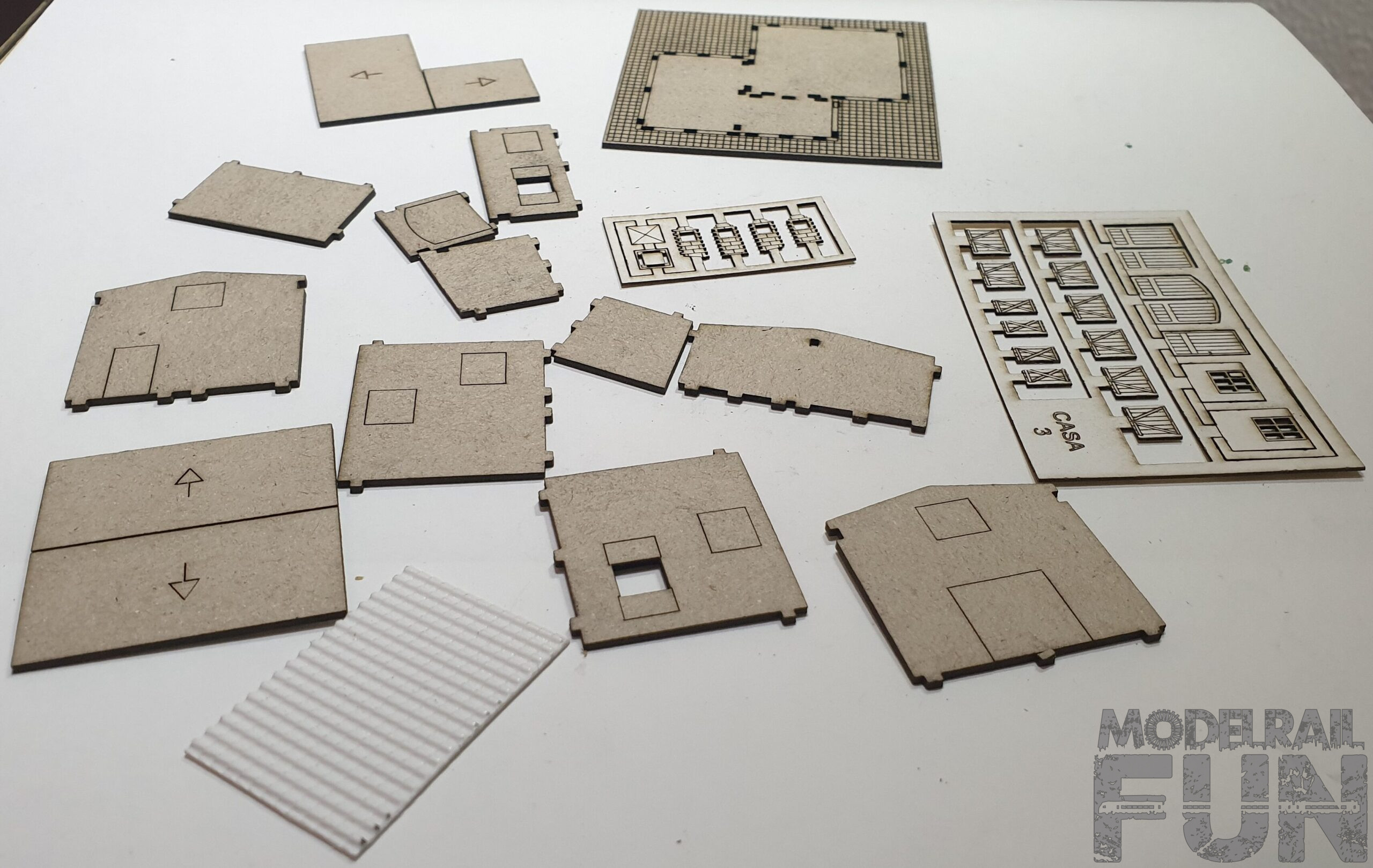 Caserío de cartón cortado por laser, montaje y decoración tipo andaluz en escala N