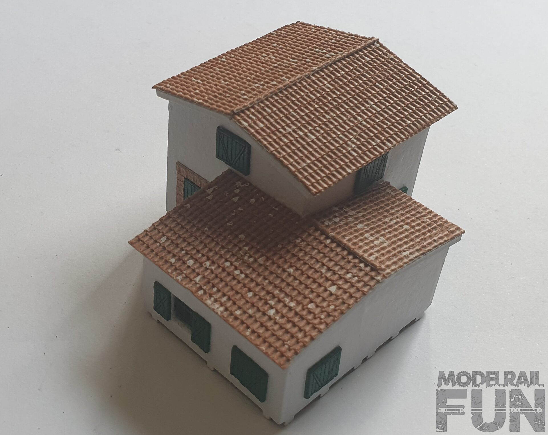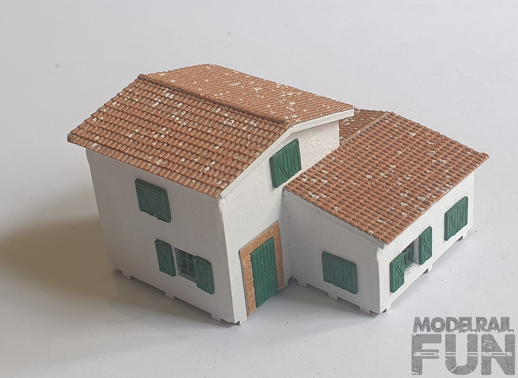 Para el tejado hemos recurrido a la referencia en escala N de «teja árabe» de la firma Redutex. Hemos pegado las puertas y contraventanas pintadas.